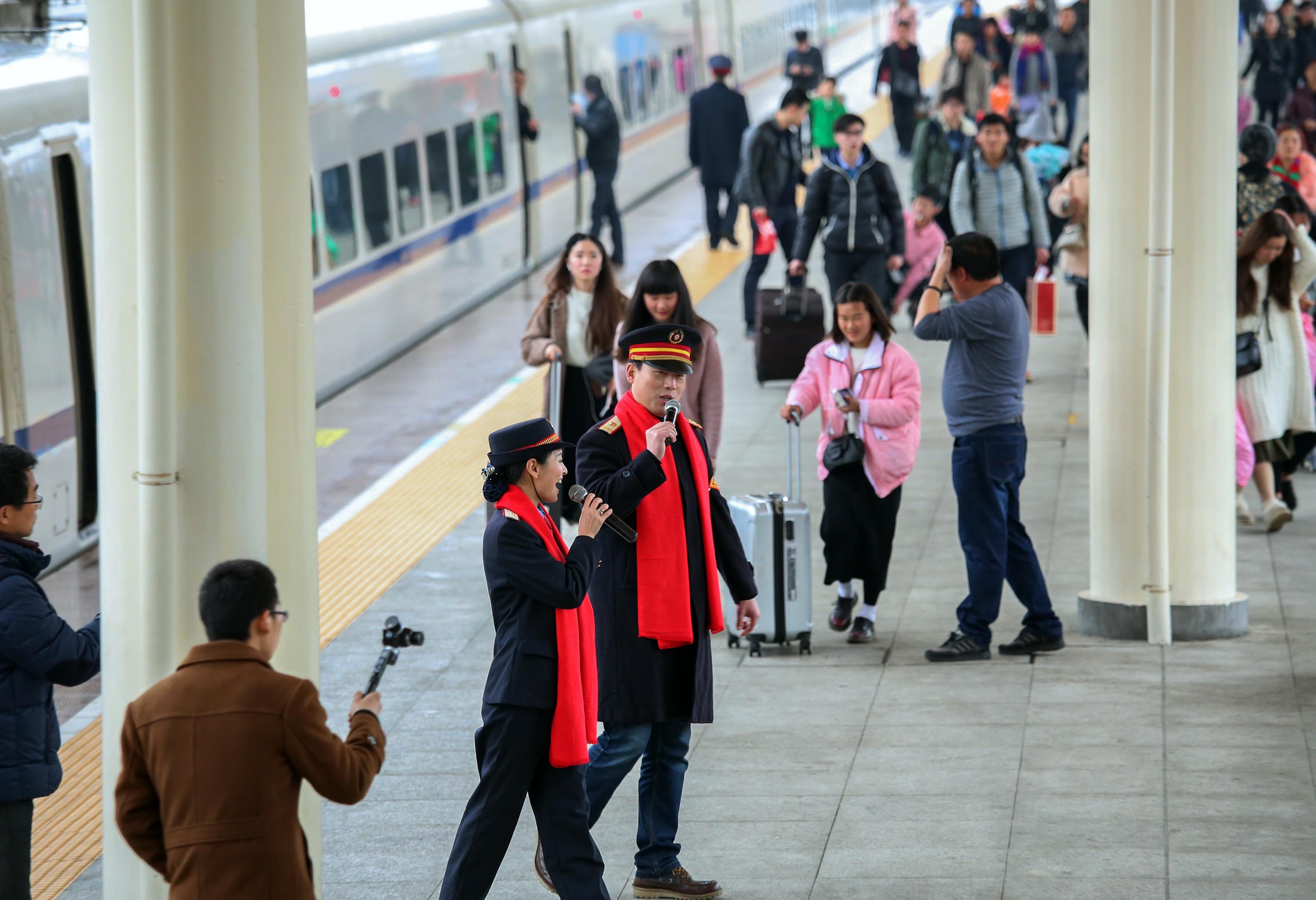 2016/2/22 元宵節(jié)。下午2點半,金華高鐵站站臺上突然音樂響起,一場突如其來的“快閃秀”來到旅客身邊,引來不少旅客駐足觀看,為元宵佳節(jié)增添了一道別樣風景。