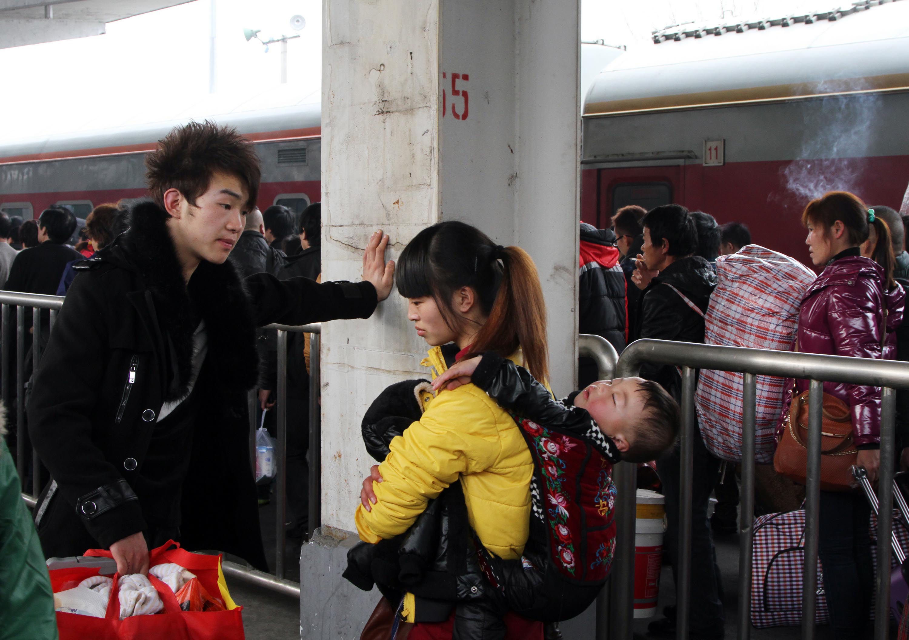 2013/2/1 金華火車站。過了春節(jié)的民工,帶著孩子返城,開始新一年的奔波。