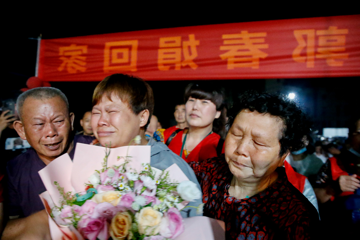 一見面,三人就緊緊地擁抱在一起,喜極而泣。