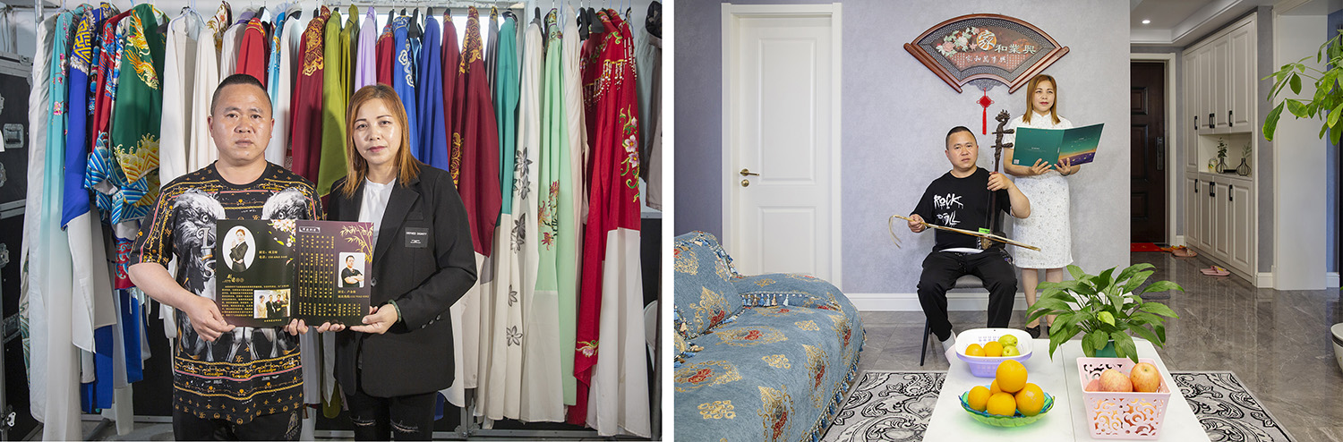8.盧金海,44歲,夫妻倆喜愛戲劇,從個體表演到創辦劇團從業22年;在家時夫拉二胡妻伴唱。