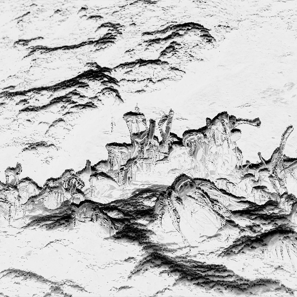 山水融于自然一草一木,也是深深地刻入了我的心靈,此組作品就是拍攝取材于大自然的青苔、水葫蘆、冰等,通過后期手法融入我心中山水的思考,意圖突破心中的山水之“框”。