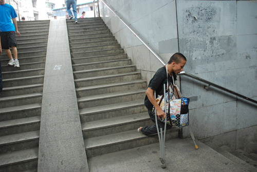 《堅(jiān)強(qiáng)弟楊杰》來自重慶長壽縣農(nóng)村的18歲殘疾青年楊杰,為了鍛煉自己獨(dú)立生存的本領(lǐng),瞞著父母家人來到武漢,在傅家坡地下通道以擺地?cái)倿樯?/span>