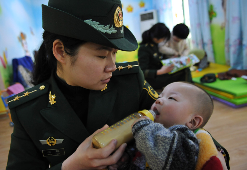 3月7日,臺州邊防支隊女警官們帶著食品、玩具等,來到駐地福利院看望孤兒,給他們送去溫暖和關懷。