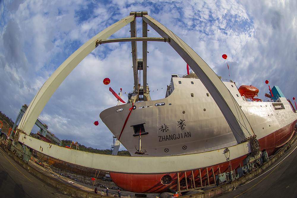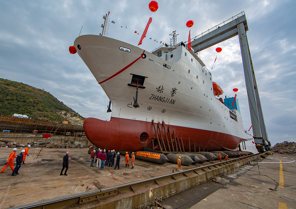 作品介紹: 我國(guó)萬(wàn)米級(jí)載人深潛器的科考母船“張謇”號(hào)成功建造,它是國(guó)際上第一條專(zhuān)門(mén)針對(duì)深淵海溝調(diào)查的科考船,國(guó)內(nèi)首艘深淵調(diào)查科考母船,也是國(guó)內(nèi)第一艘完全由民間資金支持、主要承擔(dān)國(guó)家使命的科學(xué)考察船,24日在浙江溫嶺天時(shí)造船有限公司舉行了上水儀式