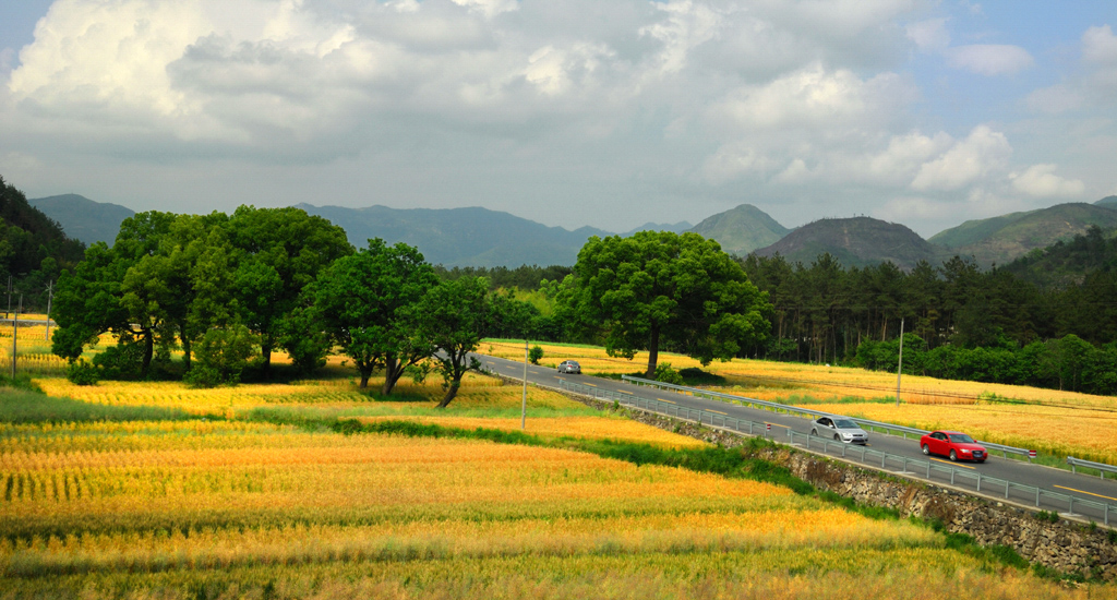 作品介紹: 麥?zhǔn)諘r(shí)分,一片金黃,仙清線穿行其中,風(fēng)景如畫