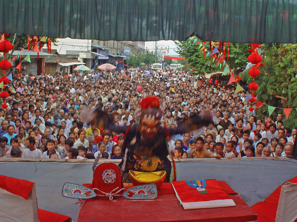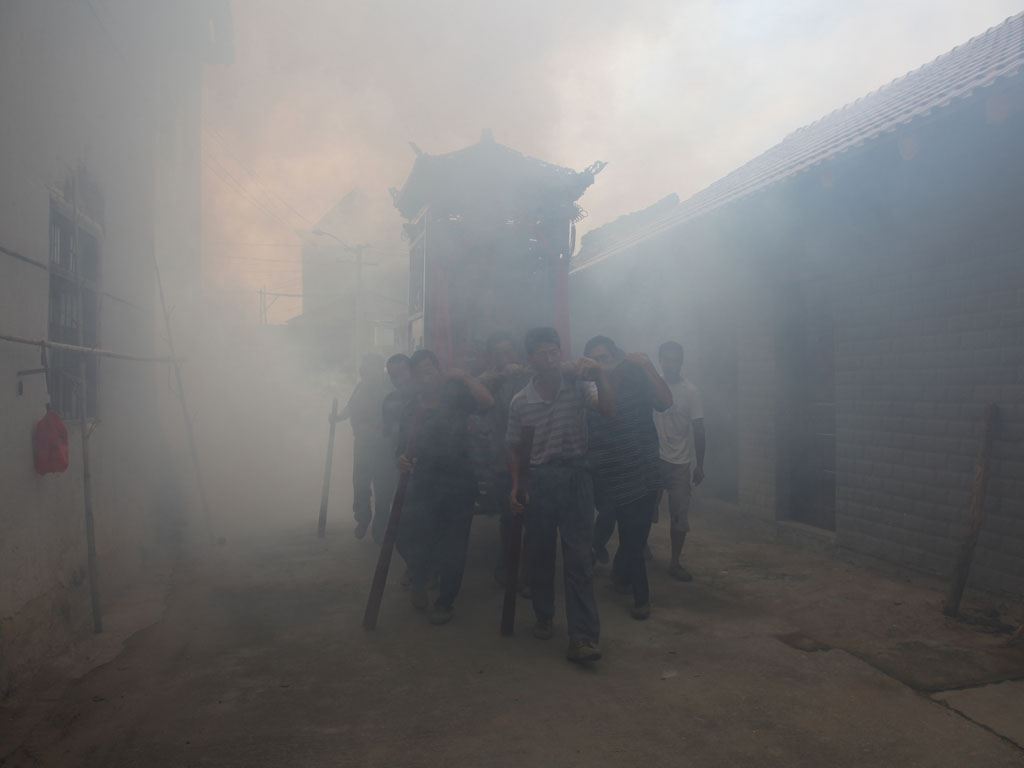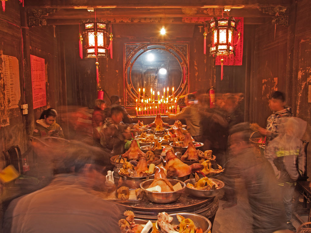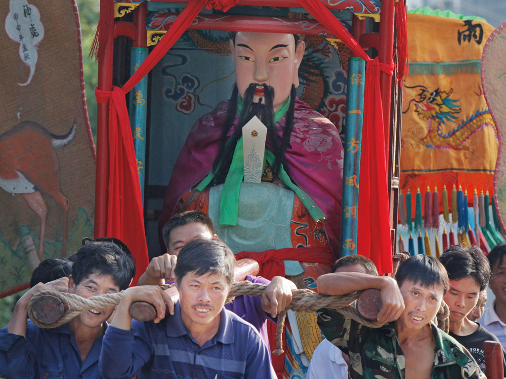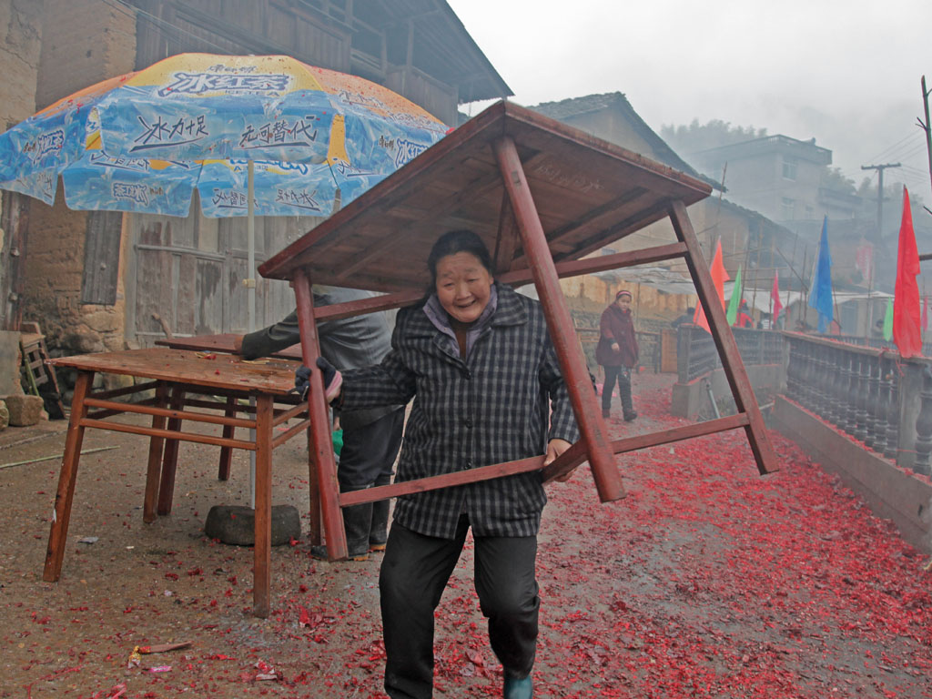 作品介紹: 鄉(xiāng)村祭祀活動(dòng)與民間信仰有著直接的關(guān)聯(lián),浙西南山村民眾除極少數(shù)人固定信佛、信基督外,多數(shù)民眾都無(wú)確定的信仰,他們?cè)谝欢ōh(huán)境或一定氛圍下,偶爾信佛、信道、信神,而更多的是信神,這從他們建的眾多神廟可以說(shuō)明。所供的神五花八門(mén),除中國(guó)傳統(tǒng)傳說(shuō)中的神外,在各地也有本地傳說(shuō)中的神,或叫地方神。而對(duì)于家族來(lái)說(shuō),老祖宗也處神的位置。鄉(xiāng)村祭祀其實(shí)就是祭神活動(dòng),除祭祖、祭祀亡靈活動(dòng)外,眾多祭神活動(dòng)村村都有所不同,各村根據(jù)本村傳說(shuō)傳承,或寺廟開(kāi)光,或祠堂修成,選擇或時(shí)令季節(jié)或黃道吉日舉行。祭祀活動(dòng)多以祈求風(fēng)調(diào)雨順、吉祥平安為主要內(nèi)容,因?yàn)檫@是民眾最樸實(shí)的心愿,所以參與者眾多。祭祀活動(dòng)也各有名稱(chēng),有的以時(shí)令為名,如稱(chēng)“做春福”、“做秋福”;有的以時(shí)間為名,如稱(chēng)“七月會(huì)”“元宵燈會(huì)”;有的以形式為名,如“迎神會(huì)”;在正月十五前后舉行的多叫“燈會(huì)”。祭祀活動(dòng)除做一定的祭祀儀式外,更多時(shí)間是會(huì)餐和看戲。或許在交通、信息交流不發(fā)達(dá)的以前,祭祀活動(dòng)最大的功能在會(huì)親訪友,在民眾娛樂(lè),在文化傳承。而今,祭祀活動(dòng)的原始功能已經(jīng)改變,在眾多跨地域人員趕熱鬧中,顯現(xiàn)的更像是一場(chǎng)場(chǎng)荒誕劇。推薦:王培權(quán)