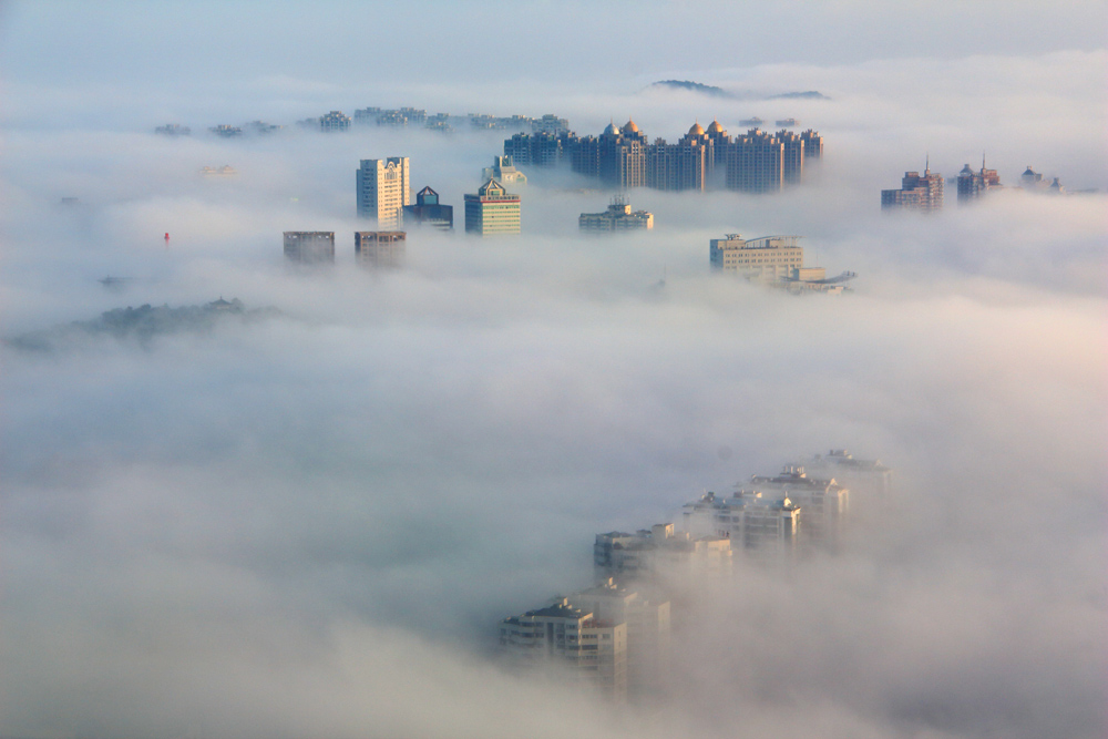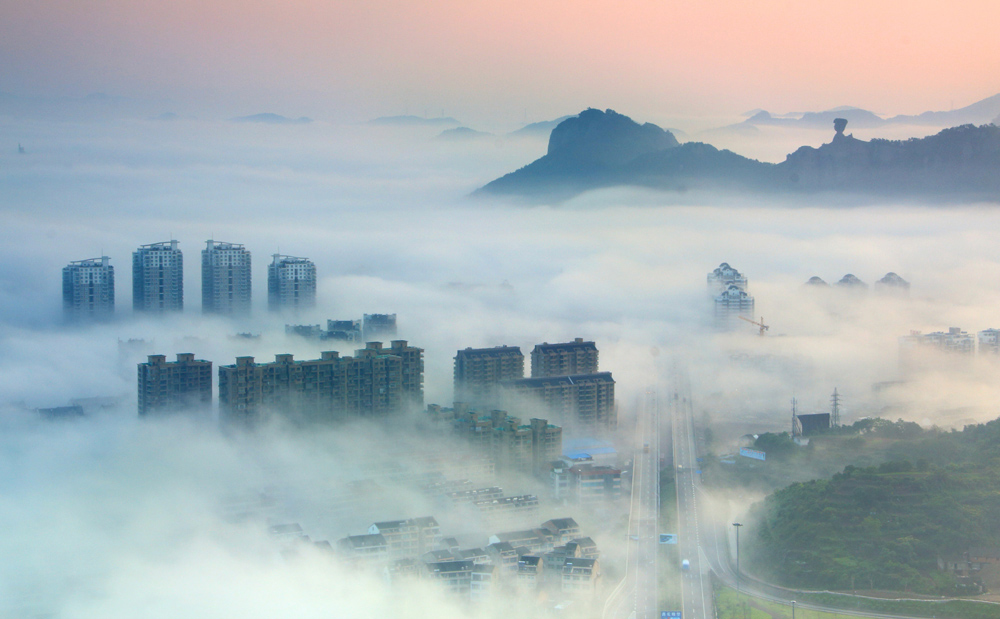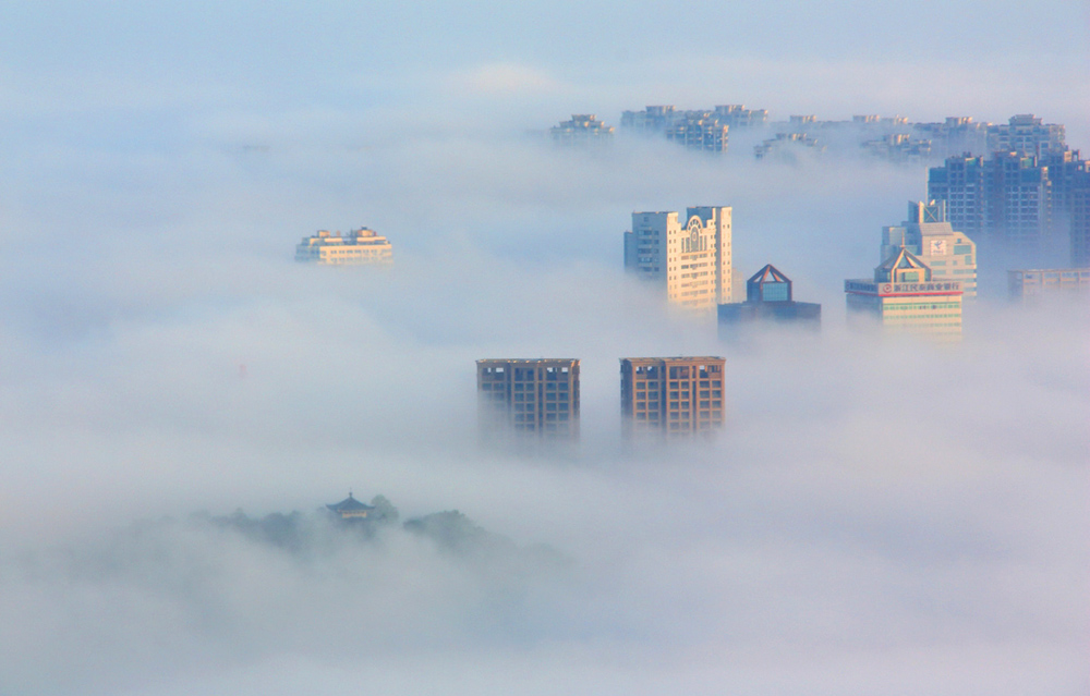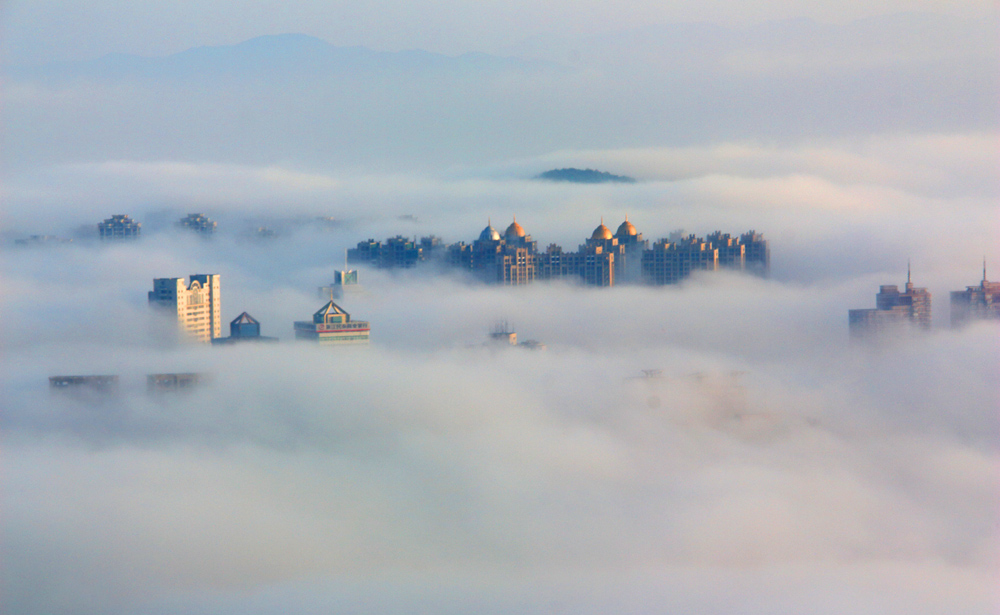 彌漫的晨霧,繁榮的小城。