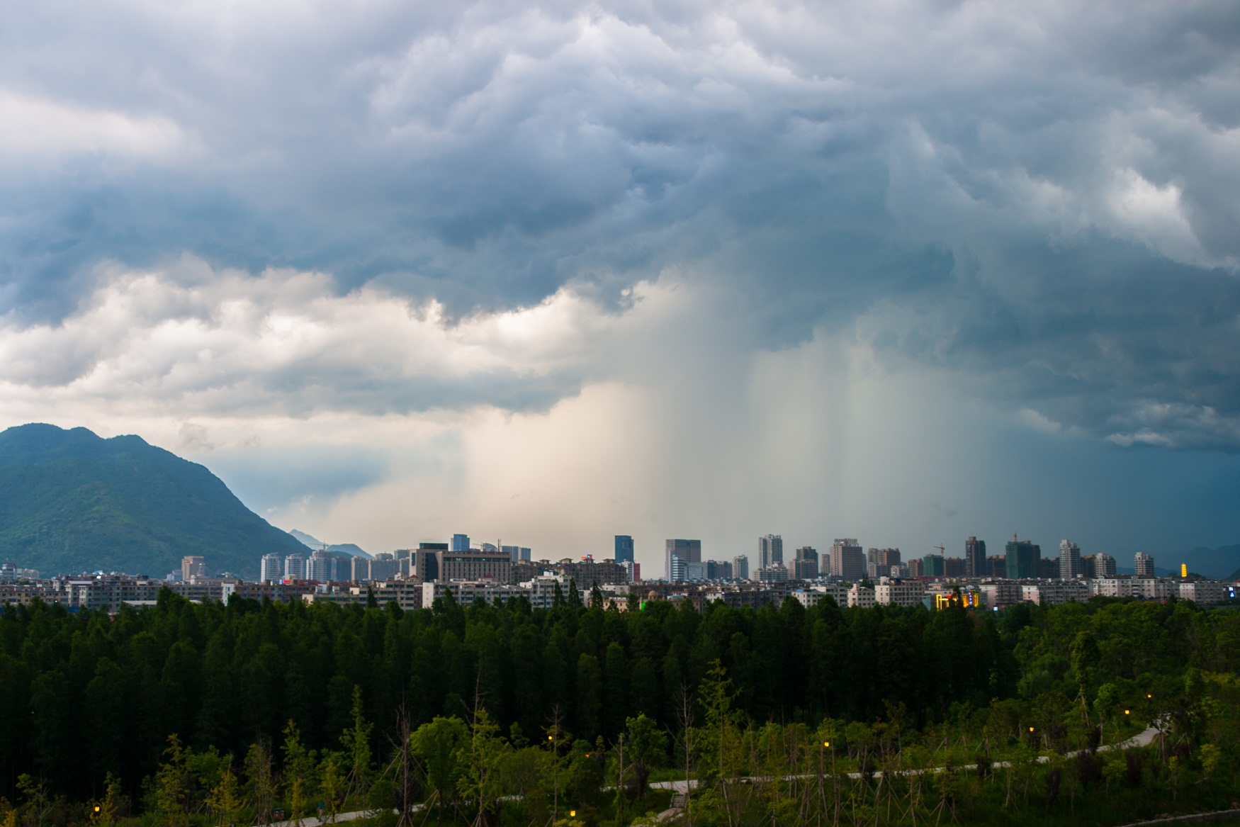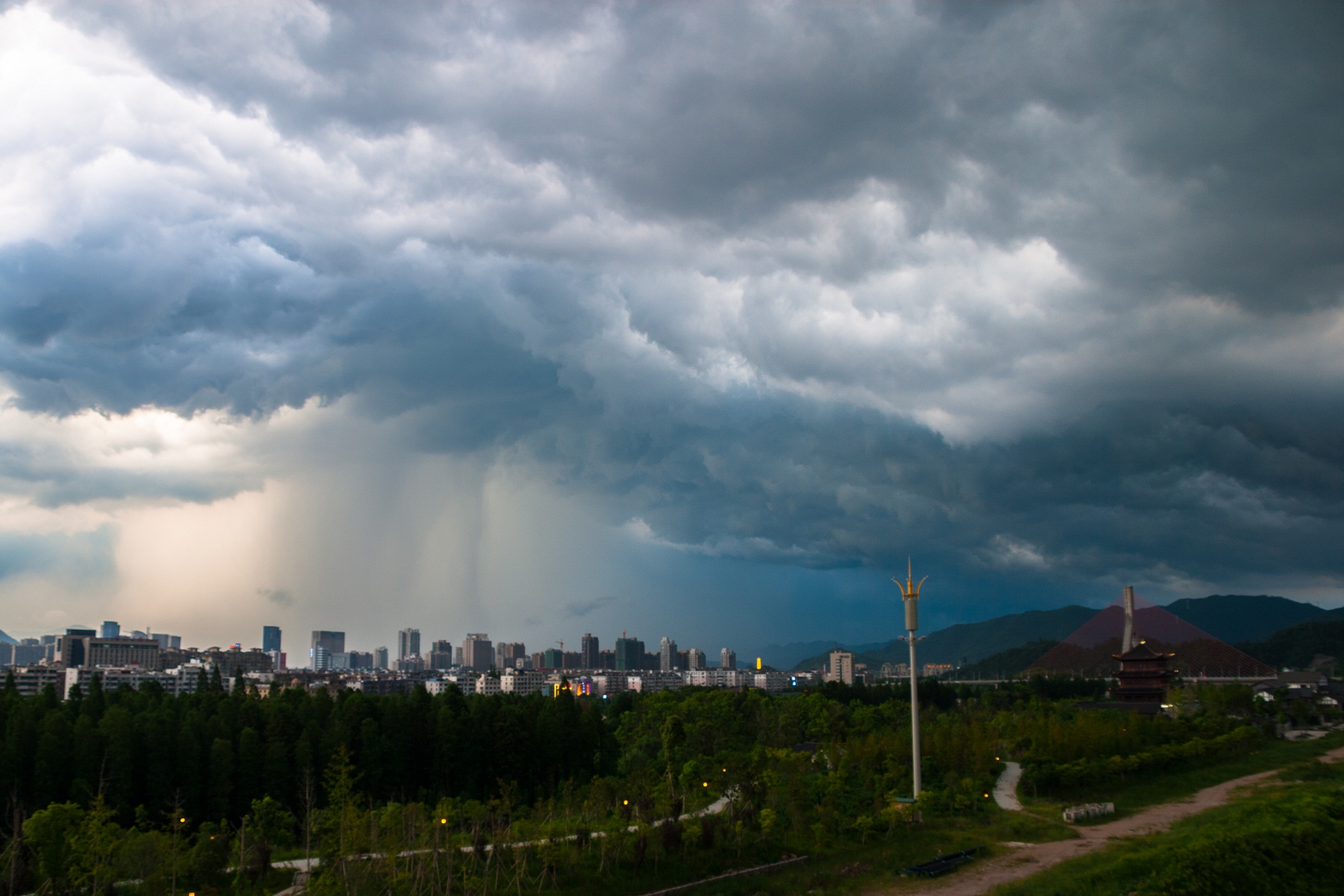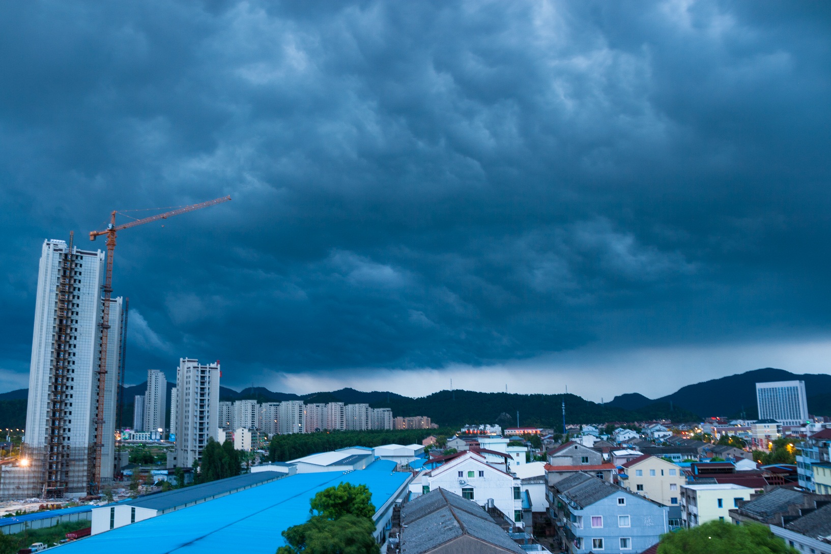 傍晚的臨海城,大雨壓境