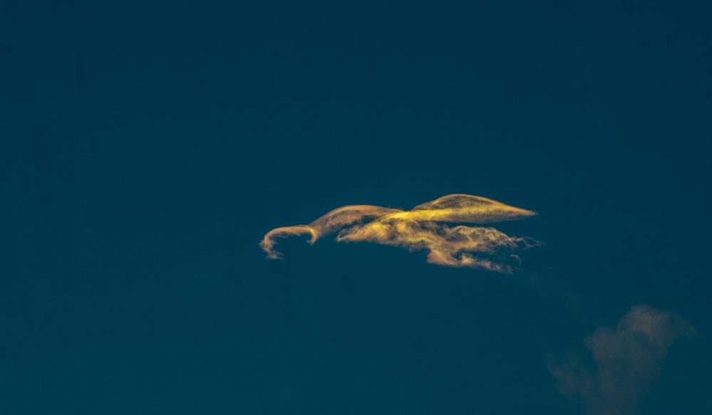 在天空云彩飄動,我抓住機會拍下這一張,形象十分象一只展翅飛翔的雄鷹。