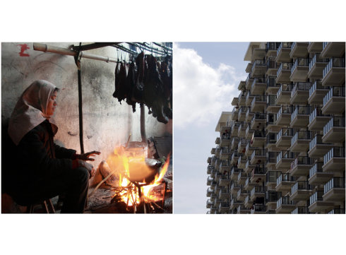 鄭川的拍攝遵循的是客觀,冷靜的原則。他用大畫幅相機(jī)拍攝的那些畫面,便是現(xiàn)代社會最具標(biāo)志性的景觀范本,拔地而起的高樓和迥異的建筑風(fēng)格,那些超乎尋常的空間,讓影像折射出一種荒誕和冷幽默的氣息,他的影像向人類提出了詰問和反思。