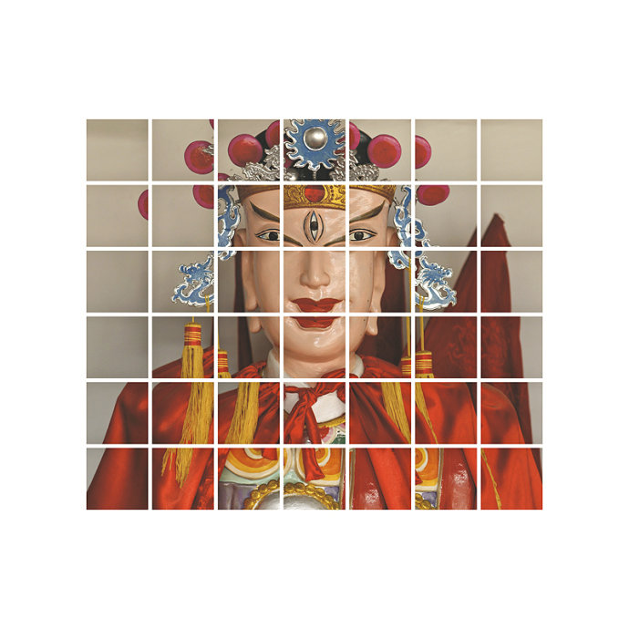 傅為新則是通過影像重組的方式,讓那些在人們心目中神圣、充滿尊嚴(yán)的佛像具有了一種錯(cuò)亂的表象。這些看似“乾坤大挪移”的拍攝和處理手法,讓影像有了一種超乎現(xiàn)實(shí)的荒誕和離奇。他的影像也對人們發(fā)出了拷問:信仰是什么?諸神真的存在么?現(xiàn)實(shí)和想象究竟隔著多少的距離?