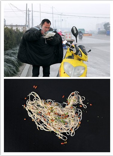 唐志揚(yáng)的作品雖然也是真實(shí)記錄普通的事物,不過表現(xiàn)手法上卻給人耳目一新。通過人物和食物的關(guān)系,進(jìn)行重新排列組合。攝影師用擬人化的手法給予了食物更多的形式和空間,從而讓人在觀看的同時(shí)產(chǎn)生一種趣味性和思考性,這不得不說是攝影師的巧妙和聰慧之處。
