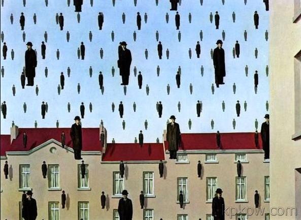 比利時(shí)畫家馬格里特代表作《天降》,具有超現(xiàn)實(shí)主義特點(diǎn)。