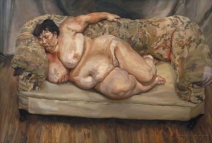 《靠著獅子圖掛毯的酣夢》,盧西安・弗洛伊德,表現(xiàn)派畫家,英國最偉大的當(dāng)代畫家之一。