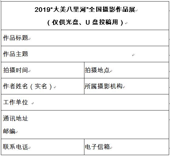 投稿作品以光盤(CD-R或DVD-R)、U盤存儲形式郵寄至:北京市東城區(qū)東四十二條48號中國攝影報社活動部2019“大美八里河”全國攝影作品展辦公室(100007)