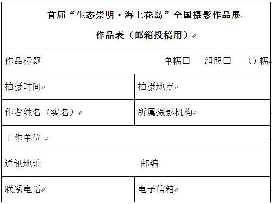 投稿作品以郵件形式發(fā)送至:13564003455@139.com,注明首屆“生態(tài)崇明?海上花島”全國(guó)攝影作品展投稿。