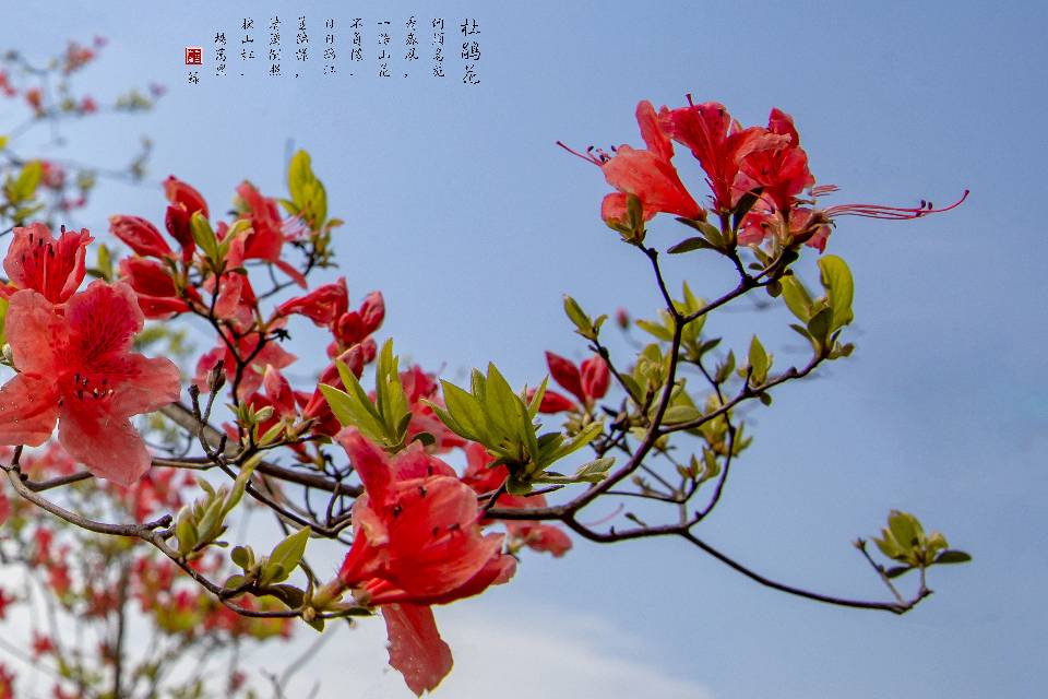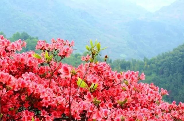 ⊱⊱⊱三門稻蓬山⊰⊰⊰三門稻蓬山有1000多畝野生高山杜鵑,樹(shù)齡逾百年,高三四米,品種多達(dá)五六種,遠(yuǎn)遠(yuǎn)望去紅、紫、粉、白把整個(gè)山坡裝扮得絢麗多彩,如云似錦,分外妖嬈。人間四月芳菲天,正是稻蓬杜鵑紅。站在遠(yuǎn)處眺望,只見(jiàn)片片紅霞璀璨,映紅了青山,那是大自然神奇的筆墨畫(huà)卷。杜鵑花發(fā)映山紅,韶光覺(jué)正濃,水流紅紫各西東,綠肥春已空。..