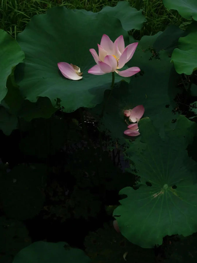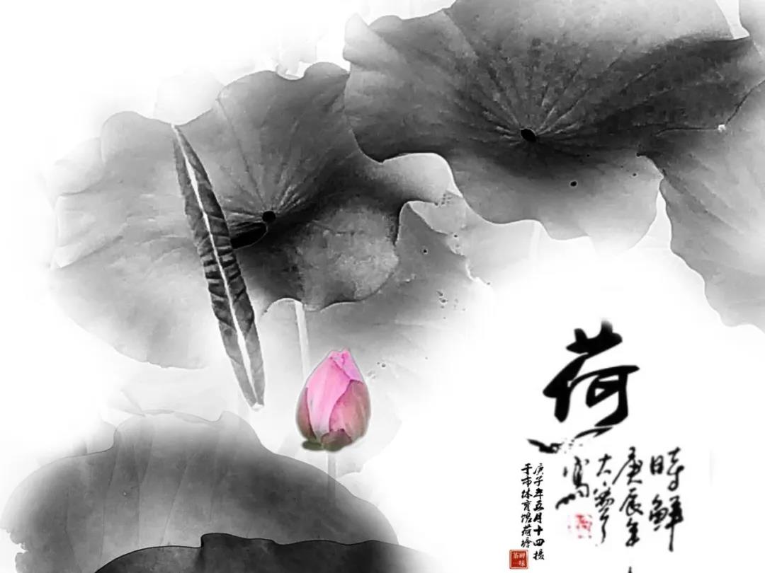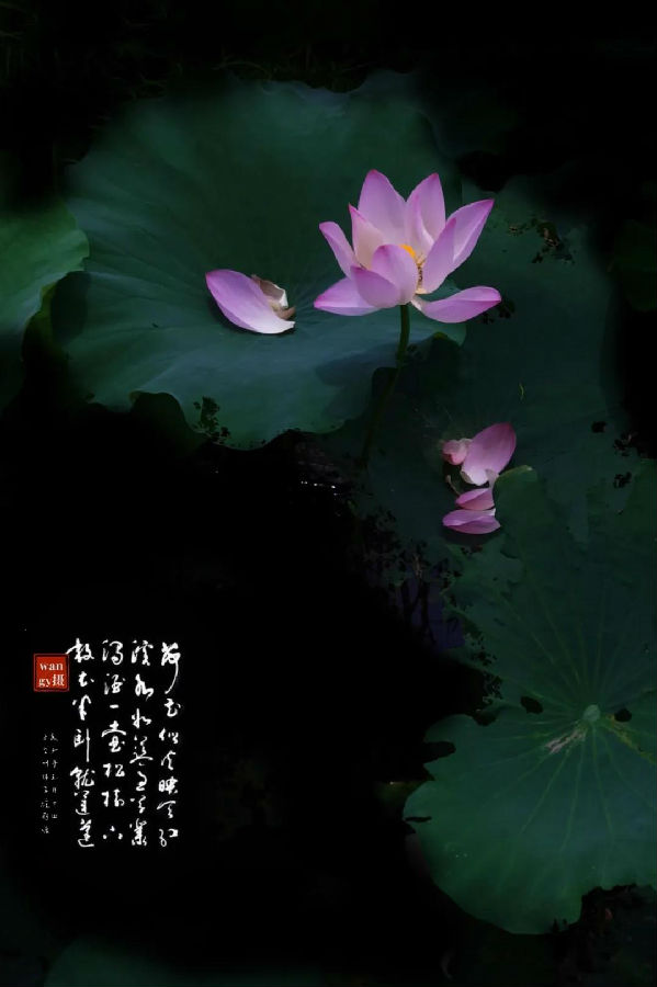 荷花修圖路徑之二:①荷花的壓暗處理;②素荷風姿(方法一、二)。