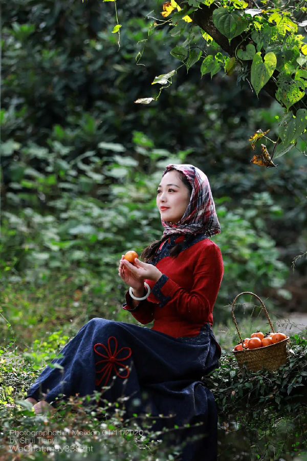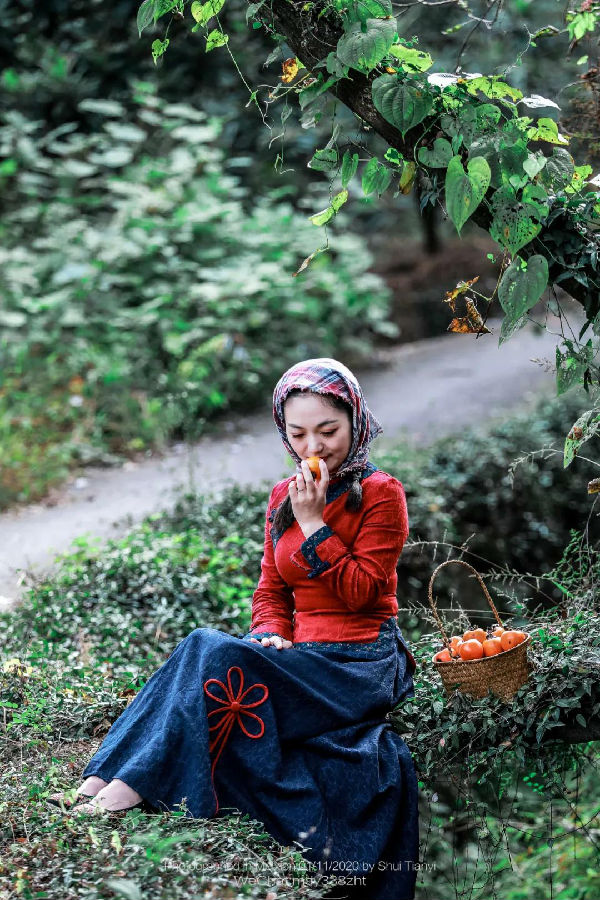 頂岙,盛產(chǎn)柿子,村里有株300年樹齡的老柿樹,每年的秋季,一顆顆紅彤彤的柿子掛在樹梢,仿佛一盞盞點(diǎn)亮的紅燈籠,映紅了頂岙的青山綠水。秋水十里,不如柿你,佳人在柿樹下,一個回眸,一次淺笑,整個世界都柿你。