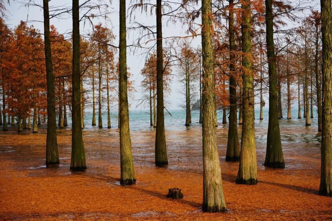 椒江7點在鑫泰廣場集合, 車赴四明湖畔,四明湖擁有華東最美紅杉林之一,此時前去,衫葉已開始紅,倒映水中格外美麗。四明湖水中紅杉林秋景斑斕,十分耀眼。水上森林,我們近距離感受這份晚秋特“色”。往前是湖水,一望無際的湖水,往后是紅杉,成片紅彤彤的紅杉,初雪還未降臨之時,抓住秋姑娘的尾,共睹此秋景!就著這一片紅,影友們拿出隨身干糧,分享午餐。中餐后前往梁輝水庫,繞過一小片水杉林,到達(dá)燕窩古道入口,由此登山。這里既有翠綠的青竹,也有滄桑斑駁的青石板;既有湖山湖水交相輝映,也有靜立湖畔的那一片紅杉林。整條線路有山、有水有古道,是一條體驗感極佳的美妙線路。途徑紫龍廟-馬路坪-洪家祥-梅家埭,全程環(huán)線徒步約9km。下午適時返回臺州,結(jié)束愉快的旅程!