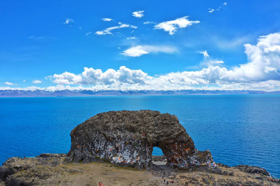 早餐后離開班戈,經巴木錯,后抵達納木錯北岸——圣象天門景區(qū),拍攝念青唐古拉山、納木錯、三道灣、圣象天門等,圣象天門,顧名思義。一只天然形成的巨大石象,站立在遼闊的納木錯岸邊,象鼻恰恰的深入湖面,仿佛正在汲取這來自雪域的神圣之水。而石象的身體與象鼻之間,就如同一個巨大的門,是通往天堂的圣門。作為藏傳密宗的一處圣地,千百年來無數的高僧隱士在此清修,現在依舊如此。晚宿圣象天門帳篷營地。
