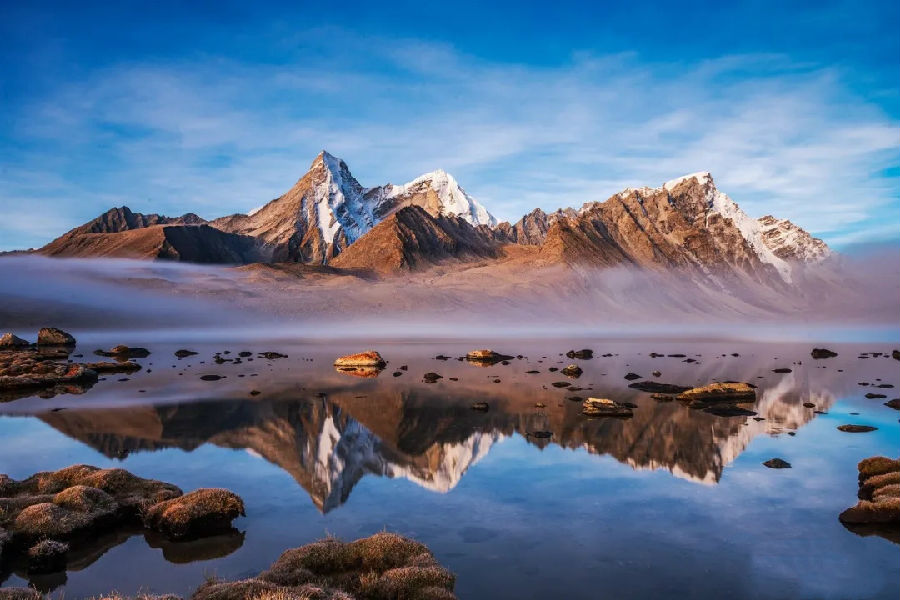 早起前往宗錯湖,拍攝阿瑪直米雪山日照金山倒影等,后拍攝定結濕地,后經定日前往珠峰自然保護區(qū),翻越加烏拉山拍攝海拔8000米以上的五座山峰:從左向右排列的順序是:瑪卡魯峰、洛子峰、珠穆朗瑪峰、卓奧友峰、希夏邦瑪峰,后抵達絨布寺,拍攝珠峰日落金山,晚天氣好可拍攝星空。