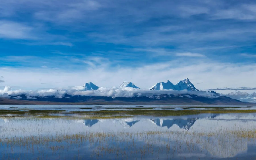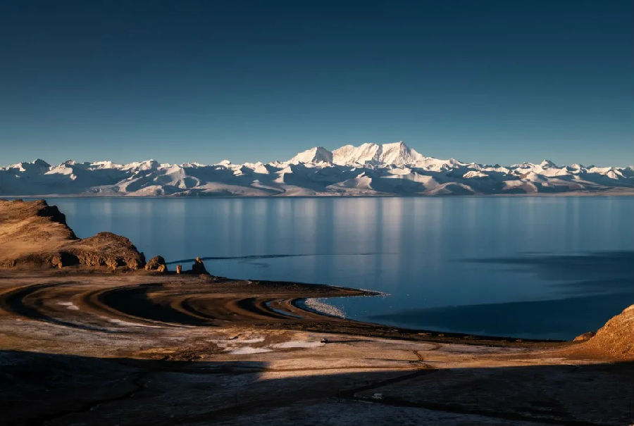 當惹雍措,她是西藏苯教圣湖,神話故事眾多,湖水幽深碧藍,層次豐富,攝人心魄,猶如一塵不染的人間仙境。湖邊南岸為達爾果山,一列7峰,和當惹雍措一起被雍仲苯教教徒視為神山圣湖。