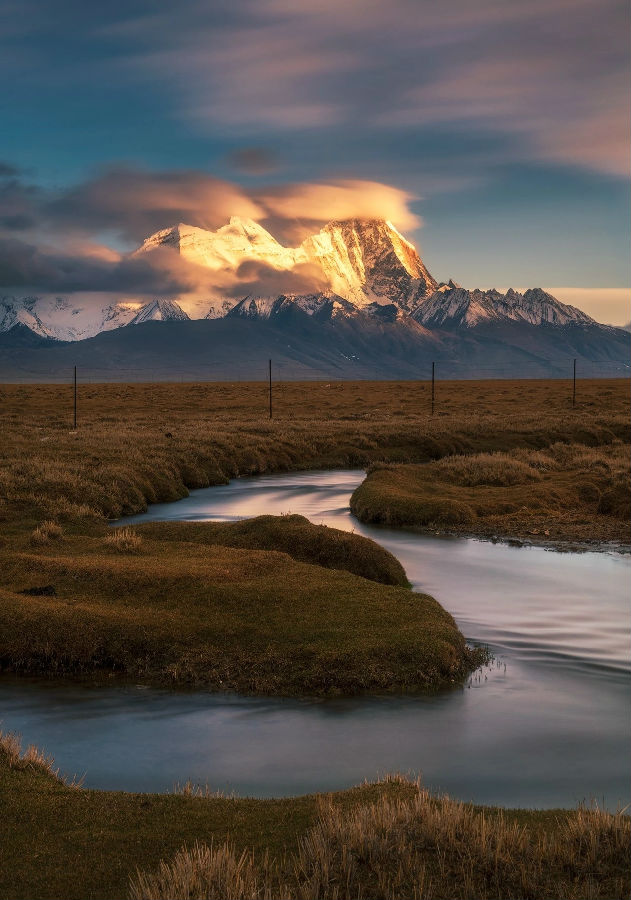 早起前往沖巴雍錯拍攝崗城達群峰日照金山、沖巴雍錯雪山倒影等,后經噶定線經崗巴前往曲登尼瑪冰川,后前往定結沿途拍攝定結濕地,晚宿定結縣。