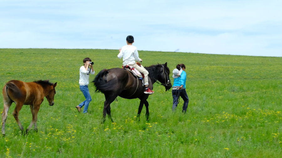 早餐后,小腳丫乘車前往草原第一軍馬訓練基地、也是國內(nèi)唯一的軍馬場騎馬。紅山軍馬場風景優(yōu)美,景觀獨特,藍天白云、綠草茵茵,氣候涼爽。大、小腳丫一起騎馬深入草原深處,感受草原馬背上民族的魅力與草原的秀麗風光。軍馬場的馬都是經(jīng)過嚴格的訓練,性情溫順,且每匹馬都投入了保險。