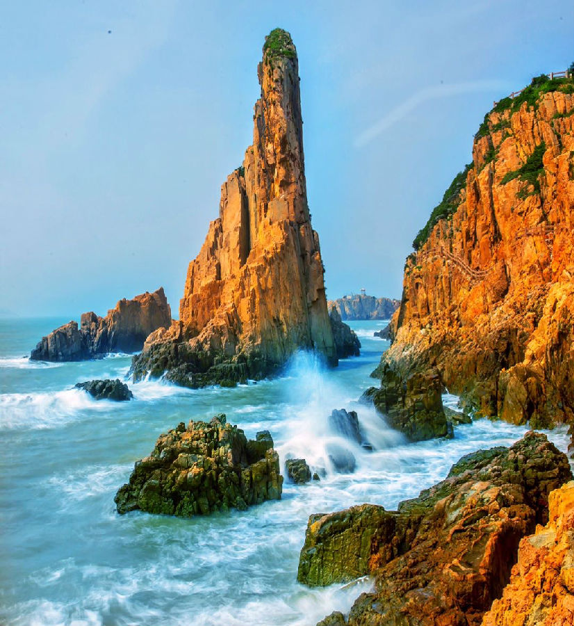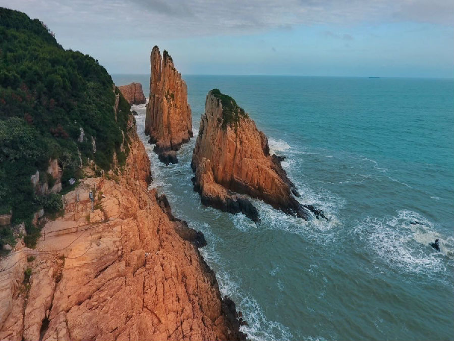 大陳島位于浙江省臺州市椒江區(qū)東部,分為上、下大陳島。上大陳島,又名上臺,西南部有避風(fēng)港灣。下大陳島,又名下臺,以丘陵地形為主,漁業(yè)發(fā)達(dá),多漁船停泊。大陳島氣候宜人,自然條件優(yōu)越,森林覆蓋率達(dá)56%,年平均氣溫16.7℃,具有典型的冬暖夏涼的亞熱帶氣候環(huán)境。由于潮汐、洋流、風(fēng)流和海洋生物的長期作用,形成了號稱“東海第一大盆景”的甲午巖、碧水細(xì)沙的帽羽沙、烏沙頭海濱浴場和風(fēng)景如畫的屏風(fēng)山、浪通門、高梨、下嶼龍洞等眾多海上奇觀。