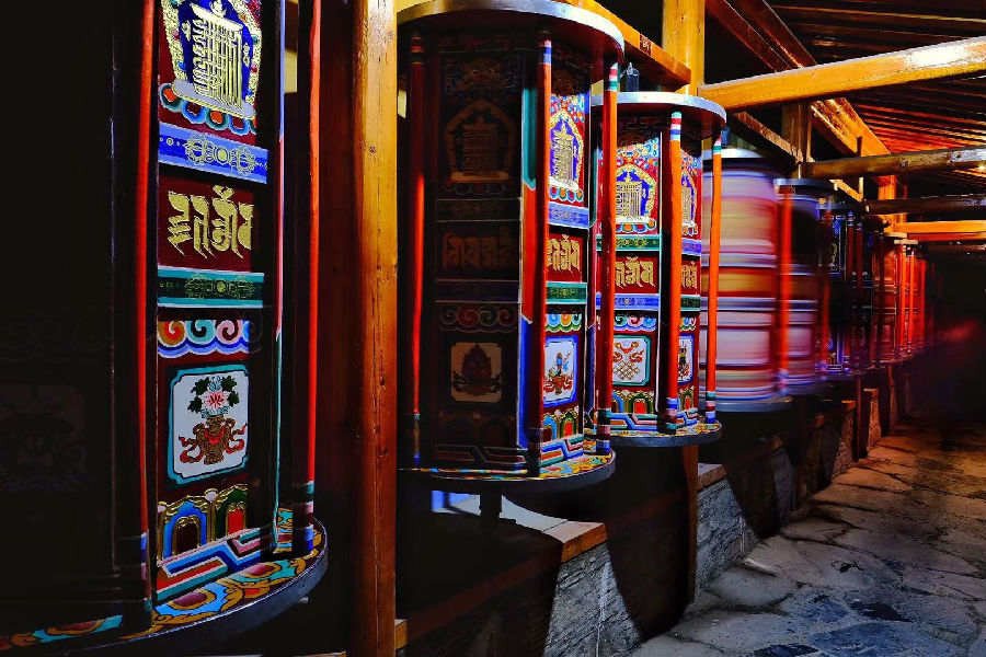 起前往拍攝扎尕那晨曦,后驅車前往“東方小瑞士”之稱的【郎木寺】是一座風情小鎮(zhèn),在四川和甘肅兩省的交界處,一條小溪從鎮(zhèn)中流過,雖寬不足2米,名“白龍江”。溪北是甘肅的“賽赤寺”,南岸屬四川若爾蓋縣的格爾底寺,中間夾著回族的清真寺,兩個藏傳佛教的寺廟在這里隔江相望。我們將拍攝位于甘肅一側的賽赤寺,這是藏傳佛教(格魯派)最大寺院之一,F(xiàn)有大經(jīng)堂、彌勒殿、金瓦殿、續(xù)部經(jīng)堂、長壽殿、護法殿、馬頭明王殿、禪和塔等十余座建筑,并有聞思、續(xù)部、時輪、醫(yī)學、雕版印經(jīng)等五大學院。寺內(nèi)建筑金碧輝煌,每一尊大殿都以鍍金為頂,金光閃閃,非常適合攝影。后出發(fā)瑪曲草原拍攝,隨后驅車抵達寧瑪寺拍攝世界第一傳經(jīng)筒,晚上入住阿壩。