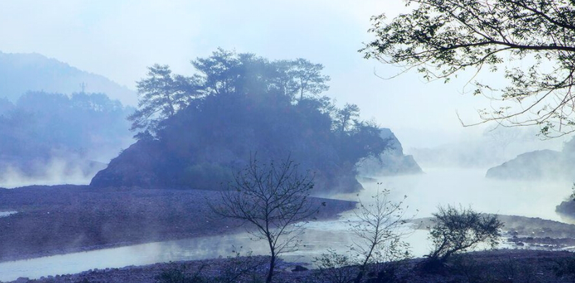 早就聽說過楠溪江的美麗傳說,只是無緣一見其豐姿,心中總有一個解不開的謎團(tuán)。曾經(jīng)在《中國古代文學(xué)史》課本中讀過描寫楠溪江的景色的詩句,“小船停槳逐潮還,四五人家住一灣,貪看曉光侵月色,不知云氣失前山。”“一天秋色冷晴灣,無數(shù)峰巒遠(yuǎn)近間。閑上山來看野水,忽于水底見青山。”
