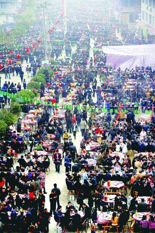 泰順百家宴是一項(xiàng)獨(dú)特又古老的鬧元宵習(xí)俗,由最初的“做春福”發(fā)展而來,是一種在族人內(nèi)部舉行的祈禱儀式,其目的是“聚宗親,商族事,祈豐收,保平安”)。大家在每年正月十五元宵節(jié)這一天一起同飲團(tuán)圓酒,聚集一起共進(jìn)午餐。漸漸的,后來逐漸演繹為聯(lián)誼性質(zhì)的聚餐——【百家宴】。這也是浙南泰順一個(gè)別具特色的民間習(xí)俗,山城大地一道古老而又亮麗的風(fēng)景。它不僅傳承演繹了山村一部古老的民俗風(fēng)情,而且也極其吻合當(dāng)今社會(huì)倡導(dǎo)的人與人之間和諧、文明、進(jìn)步的核心理念,是艱澀新農(nóng)村一種毋可置疑的時(shí)代風(fēng)尚……),期間可觀看泰順當(dāng)?shù)氐囊恍┟耖g表演,后正式開餐,萬人用餐的場(chǎng)面肯定會(huì)讓你震撼。