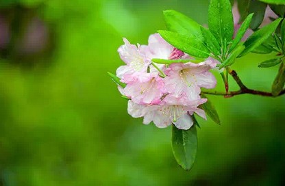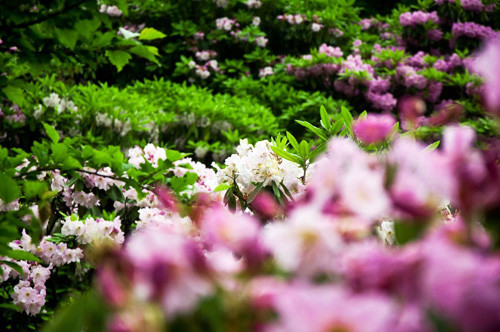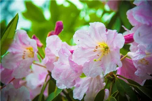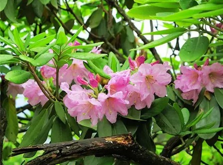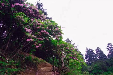 踏上山間小徑,杜鵑樹(shù)粗壯的樹(shù)干,盤(pán)枝錯(cuò)節(jié),迎著朝日伸出千百根枝條,杜鵑花在枝頭上搖曳著迎風(fēng)開(kāi)放。陽(yáng)光透過(guò)沾著朝露的晶瑩花瓣,連同沁人的縷縷幽香,灑落身上和青卵石鋪成的石階小徑上。遠(yuǎn)處山坡上、叢林中,鋪天蓋地的花朵,擁擠著,嫵媚著,開(kāi)得轟轟烈烈,紅的、白的、紫的,無(wú)數(shù)棵杜鵑連成片片云錦,涌上天穹,連接著天邊的云彩……或許華頂因?yàn)橛辛怂庞辛烁鼭狻⒏壍拇禾臁?/span>