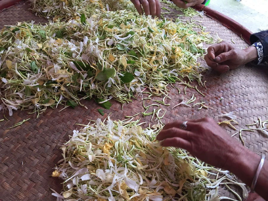 路上采摘金銀花,還能帶回家!