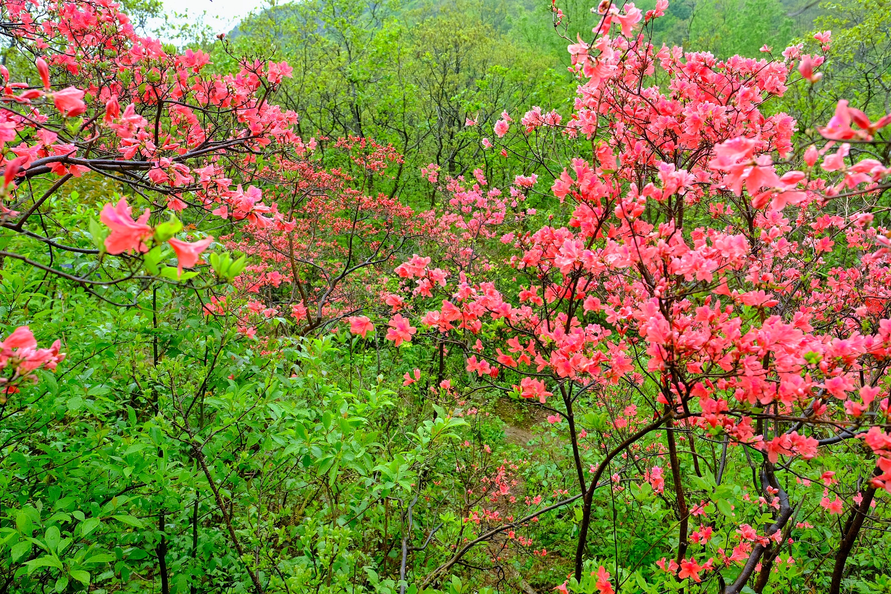 ⊱⊱⊱三門稻蓬山⊰⊰⊰三門稻蓬山有1000多畝野生高山杜鵑,樹齡逾百年,高三四米,品種多達五六種,遠遠望去紅、紫、粉、白把整個山坡裝扮得絢麗多彩,如云似錦,分外妖嬈。人間四月芳菲天,正是稻蓬杜鵑紅。站在遠處眺望,只見片片紅霞璀璨,映紅了青山,那是大自然神..