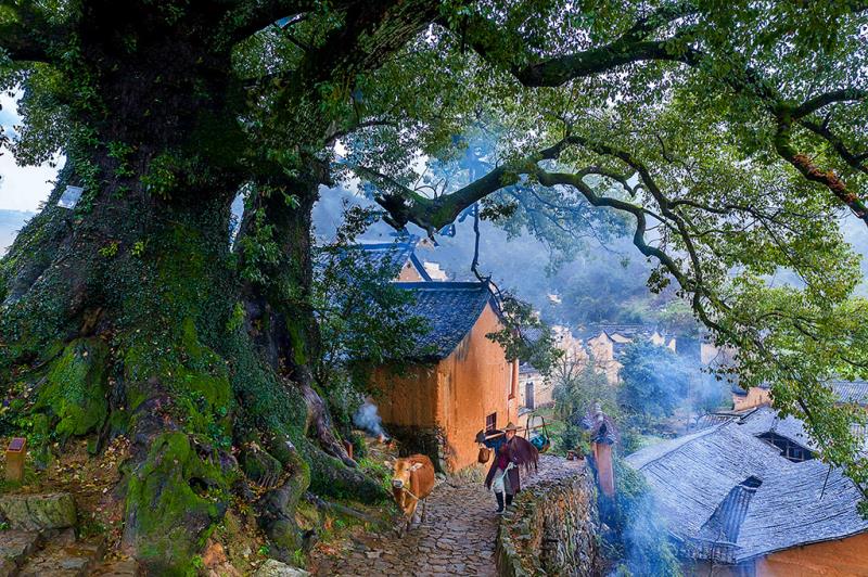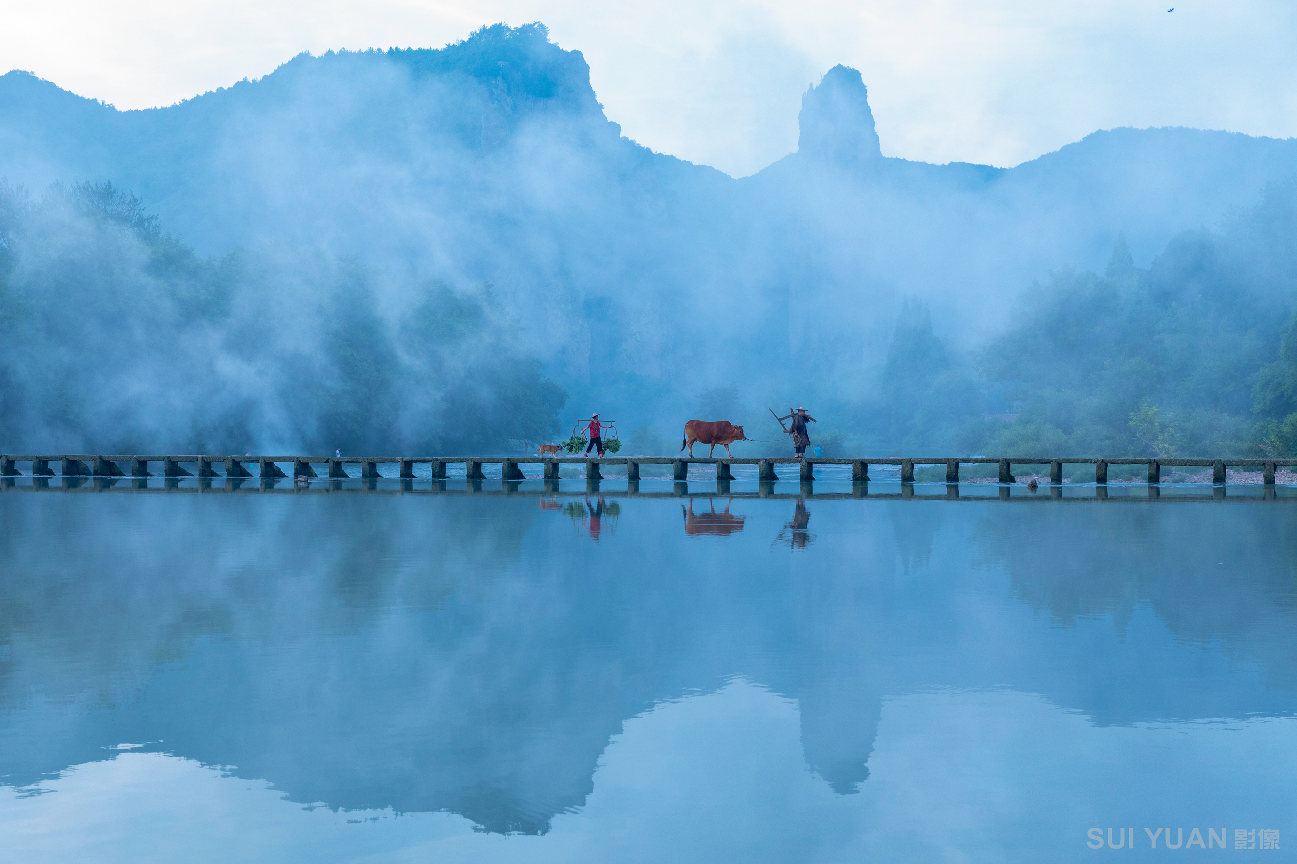 8月縉云仙都老人牽牛過橋,河陽古村2日休閑攝影團