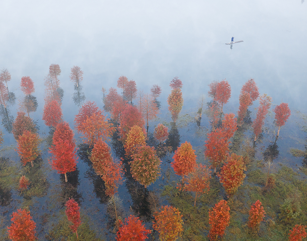 【行程安排】D1天 臺州—四明湖—燕窩古道椒江7點在鑫泰廣場集合, 車赴四明湖畔,四明湖擁有華東最美紅杉林之一,此時前去,衫葉已開始紅,倒映水中格外美麗。四明湖水中紅杉林秋景斑斕,十分耀眼。水上森林,我們近距離感受這份晚秋特“色”。往前是湖水,一望無際的湖水,往后是紅杉,成片紅彤彤的..